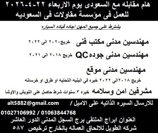 مطلوب للعمل في مطحن غذائي بمدينة السادس من اكتوبر: 1: مهندس صيانة (Maintenance engineer) في…